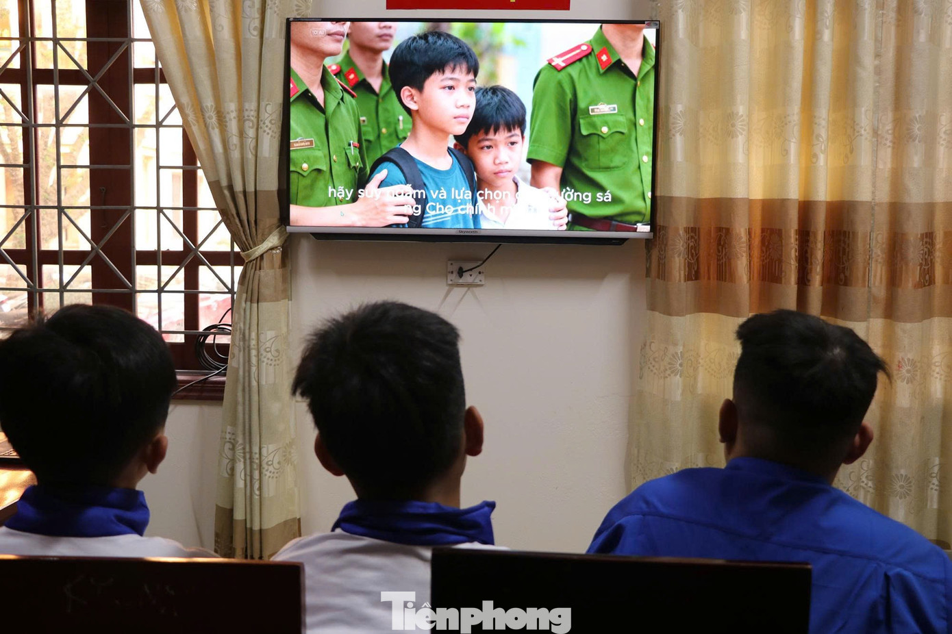 Các em học sinh được xem phóng sự, clip về tai nạn giao thông, bạo lực học đường,...