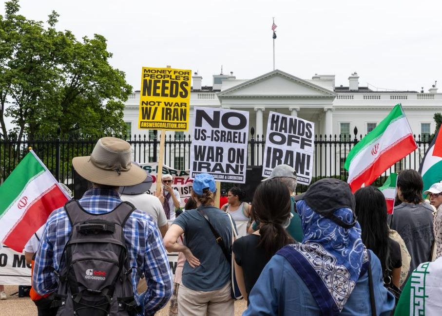 Người dân Mỹ phản đối cuộc chiến với Iran bên ngoài Nhà Trắng. Nguồn: Xinhua