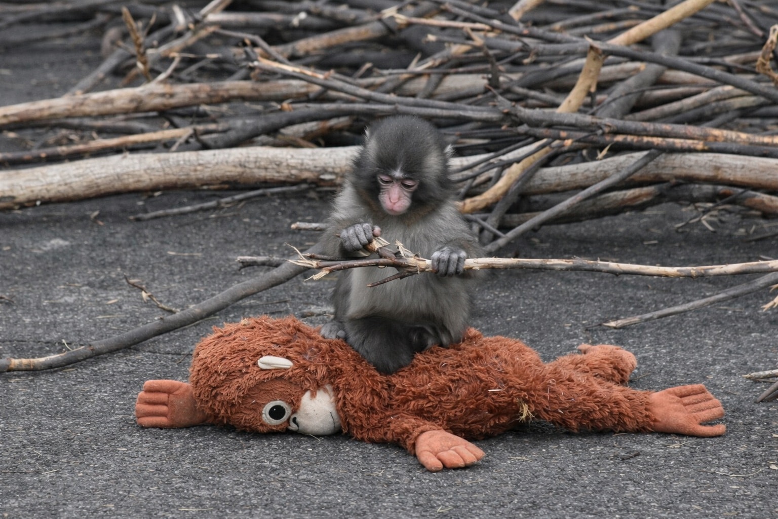 Để giúp Punch-kun vượt qua cảm giác lo âu và cô đơn, những người chăm sóc đã nảy ra ý tưởng mang đến cho chú khỉ con một con thú bông hình đười ươi, và kể từ đó, cả hai gần như không rời nhau.