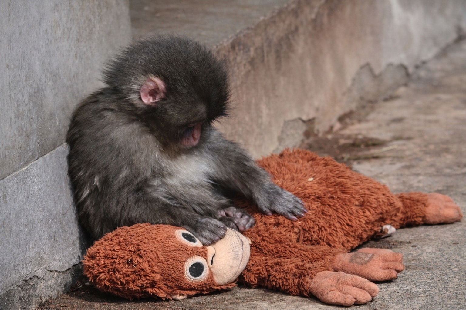 Punch sau khi bị mẹ bỏ rơi, những con khỉ khác xua đuổi, Punch được cho một con thú nhồi bông và kể từ đó, nó luôn ôm chặt thú bông của mình.