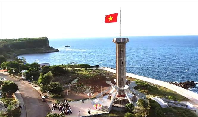 Cột cờ chủ quyền trên đảo Cồn Cỏ, biểu tượng thiêng liêng khẳng định chủ quyền Tổ quốc, là điểm dừng chân đầu tiên của nhiều du khách khi đặt chân đến hòn đảo tiền tiêu. Ảnh: Nguyên Linh/TTXVN