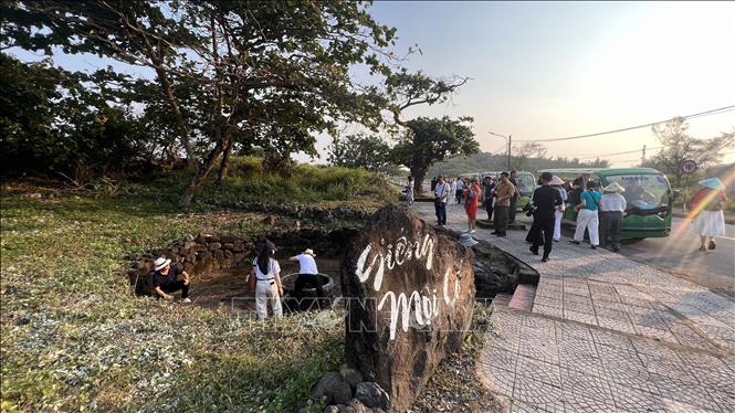 Giếng Mội cổ trên đảo Cồn Cỏ, nguồn nước ngọt tự nhiên giữa trùng khơi, là điểm đến được nhiều du khách yêu thích khi khám phá hòn đảo tiền tiêu. Ảnh: Nguyên Linh/TTXVN