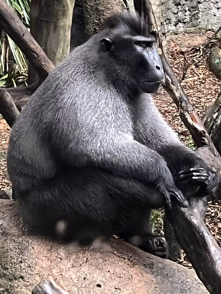 Gương mặt biểu cảm và mào lông đặc trưng. Khỉ đen chai mông (Macaca nigra) có khuôn mặt đen trụi lông với đôi mắt sáng và phần mào lông dựng trên đỉnh đầu. Biểu cảm phong phú khiến chúng trông rất “giống người”, đặc biệt khi tương tác trong đàn. Ảnh: Flickr.