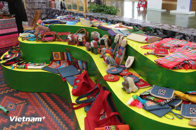 Các gian hàng đậm hương vị vùng cao thu hút sự quan tâm của đông đảo khách tham quan. (Ảnh: Phi Tuấn/Vietnam+)