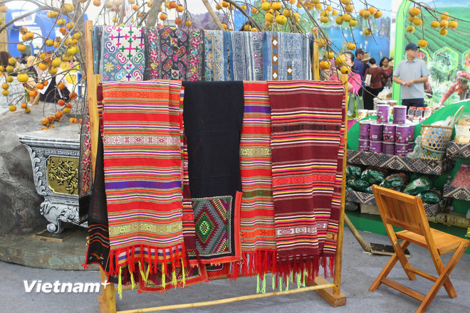 Không gian ngập sắc màu thổ cẩm từ vùng núi Đông Bắc. (Ảnh: Phi Tuấn/Vietnam+)