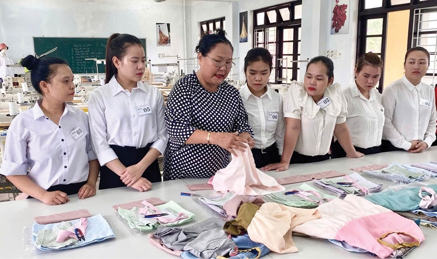 Thực hành may thời trang tại phân hiệu. Ảnh: Nhà trường cung cấp