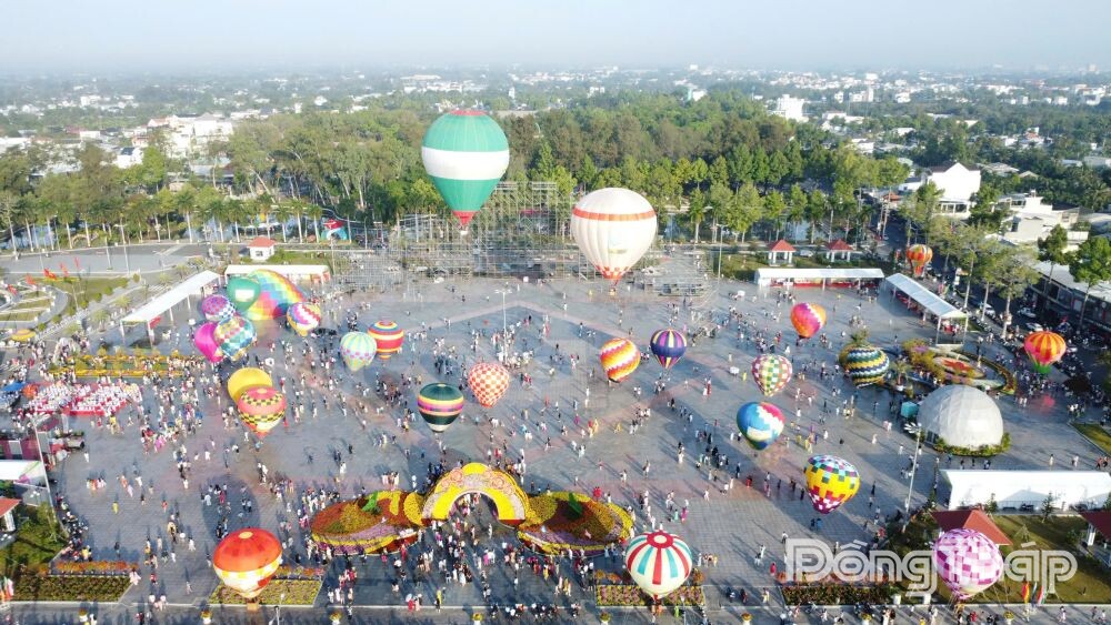 Lễ hội khinh khí cầu tại Festival Hoa - Kiểng Sa Đéc lần II năm 2025 - điểm nhấn thu hút khoảng 1,17 triệu lượt khách, góp phần tạo tổng doanh thu du lịch ước đạt 468 tỷ đồng. Ảnh: Hoài Thảo