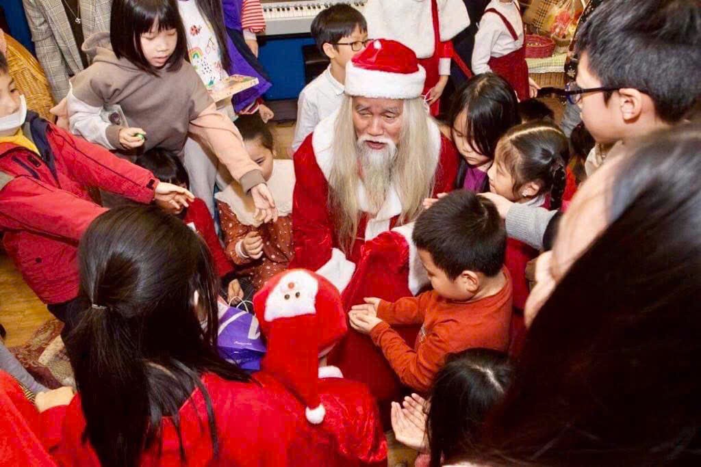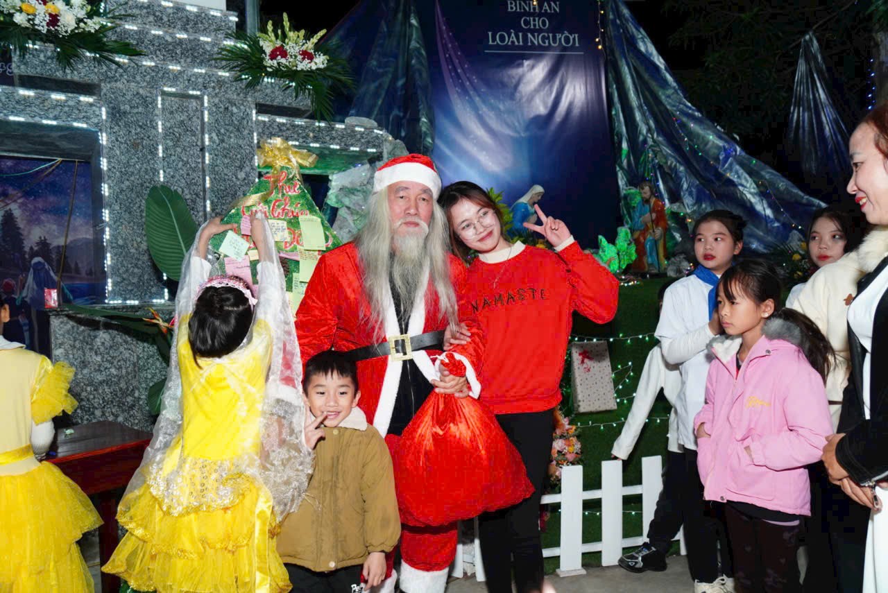 Hình ảnh ông già Noel phát quà cho các cháu thiếu nhi tại một xứ đạo