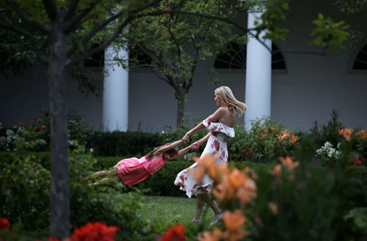 Bà Ivanka Trump chơi đùa với cô con gái Arabella Rose Kushner tại Vườn Hồng, tháng 6/2017, trong nhiệm kỳ đầu của Tổng thống Donald Trump. (Nguồn: The White House)