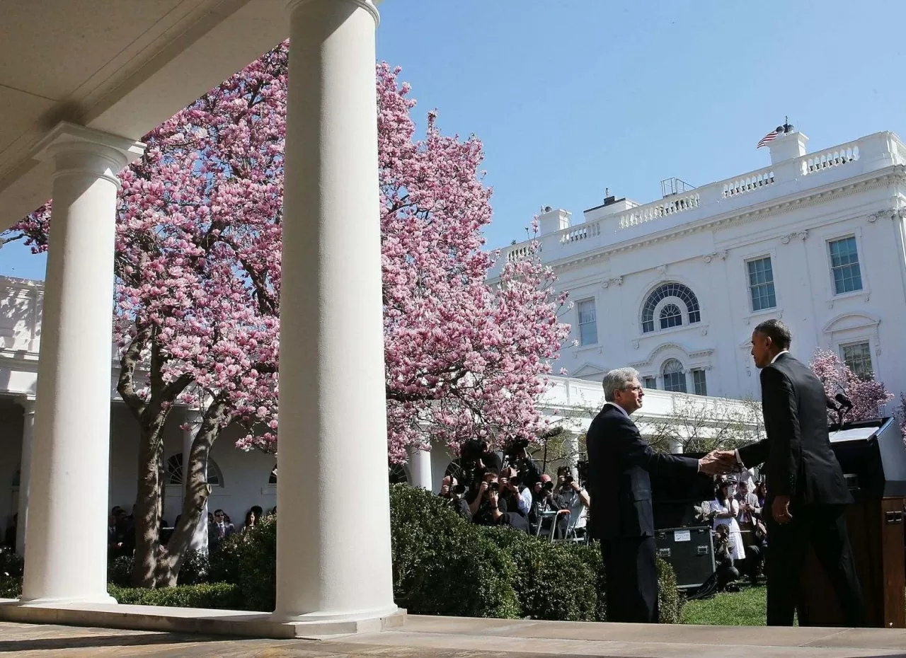 Một nhân viên chăm sóc khuôn viên Nhà Trắng đang cắt cỏ phía ngoài phòng Bầu Dục, giữa lúc Vườn Hồng đang vào mùa hoa nở, tháng 4/2006. (Nguồn: CNN)