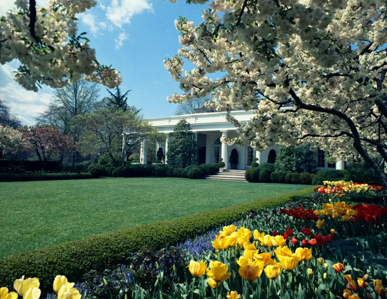 Trong ghi chép năm 1983 của bà Rachel Lambert Mellon, người thiết kế Vườn Hồng dưới thời Tổng thống John F. Kennedy, có viết: “Nơi này đã thực hiện đúng tầm nhìn của ngài Kennedy: Một khu vườn trường tồn, nơi mà bầu không khí, với sự tinh tế trong những biến chuyển không ngừng của khu vườn, sẽ phản chiếu chính sự chuyển biến trong dòng chảy của lịch sử”.