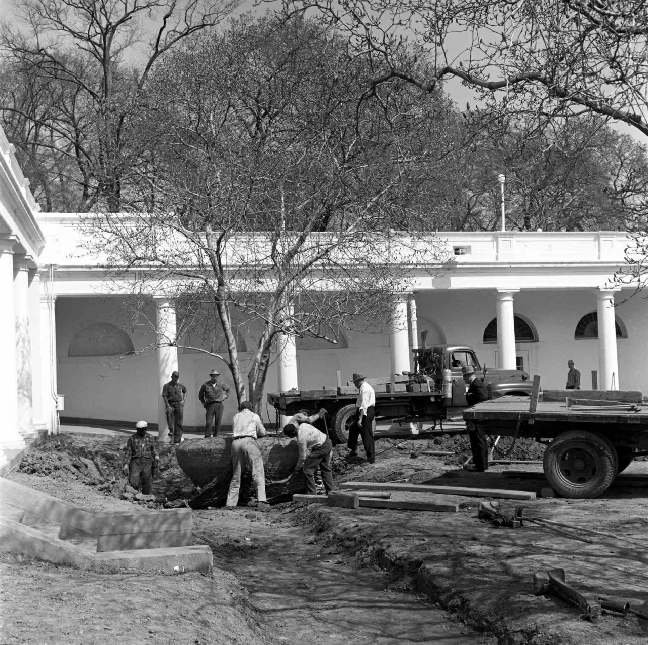 Công đoạn cải tạo Vườn Hồng tiếp tục diễn ra vào tháng 3/1962, dưới thời Tổng thống John F. Kennedy. Khu vườn mới do bà Mellon thiết kế. (Nguồn: John F. Kennedy Presidential Library and Museum)