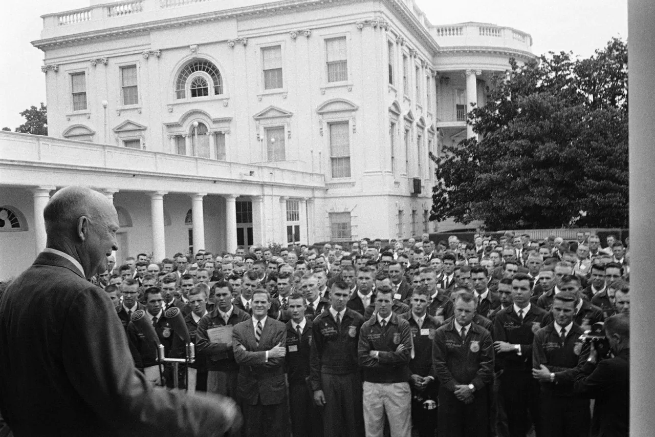 Tổng thống Dwight D. Eisenhower phát biểu trước các thành viên tổ chức Future Farmers of America (FFA) tại Vườn Hồng vào tháng 7/1959. (Nguồn: The White House)