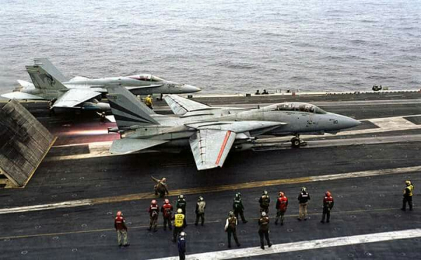 F-14 Tomcat trên boong tàu sân bay - “Từ boong tàu lên màn bạc: khí tài quân sự thành biểu tượng văn hóa đại chúng, như ‘Top Gun’, định dạng trí tưởng tượng về sức mạnh".