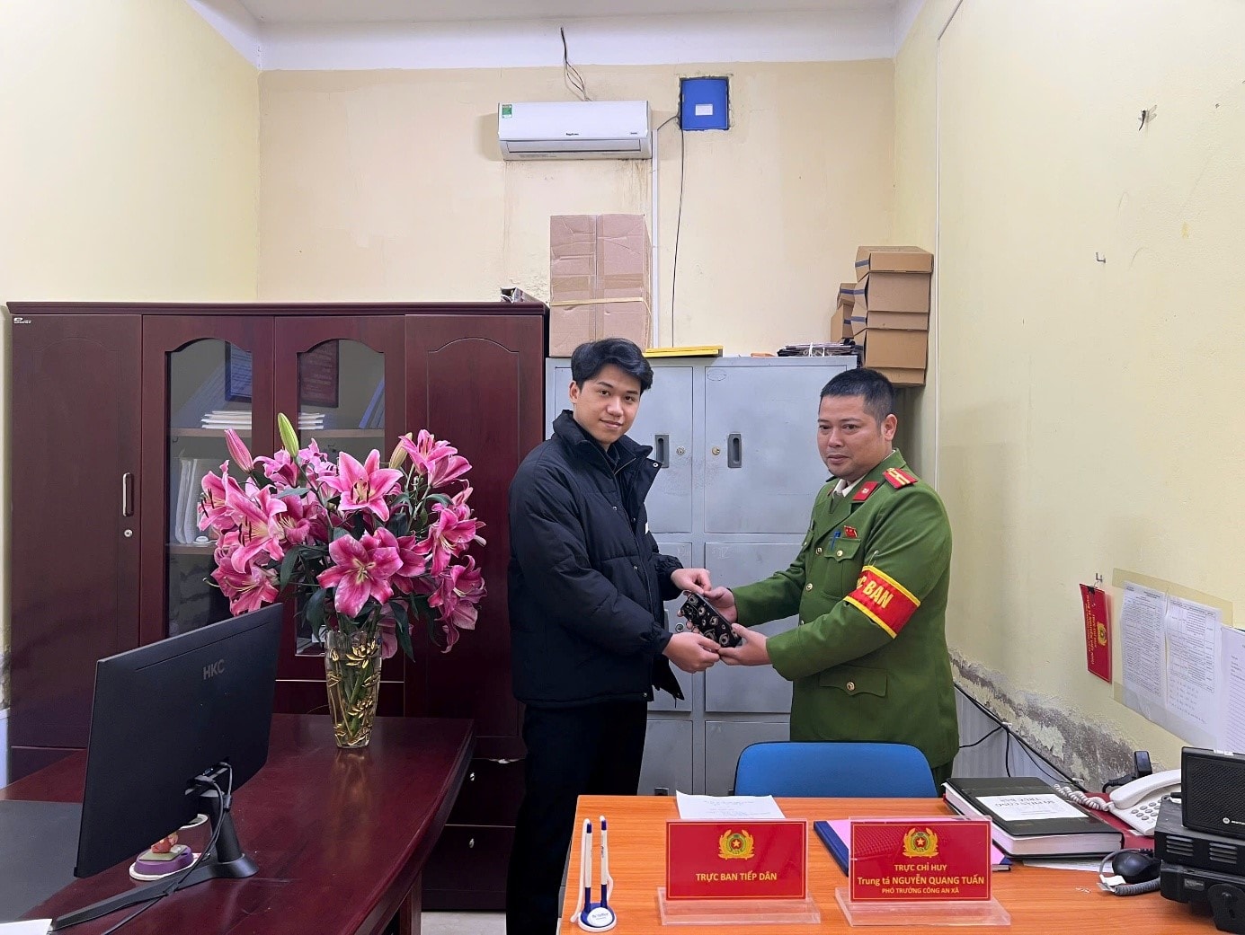 Công an xã Hoài Đức kịp thời hỗ trợ người dân tìm lại tài sản bị đánh rơi. Ảnh: CACC