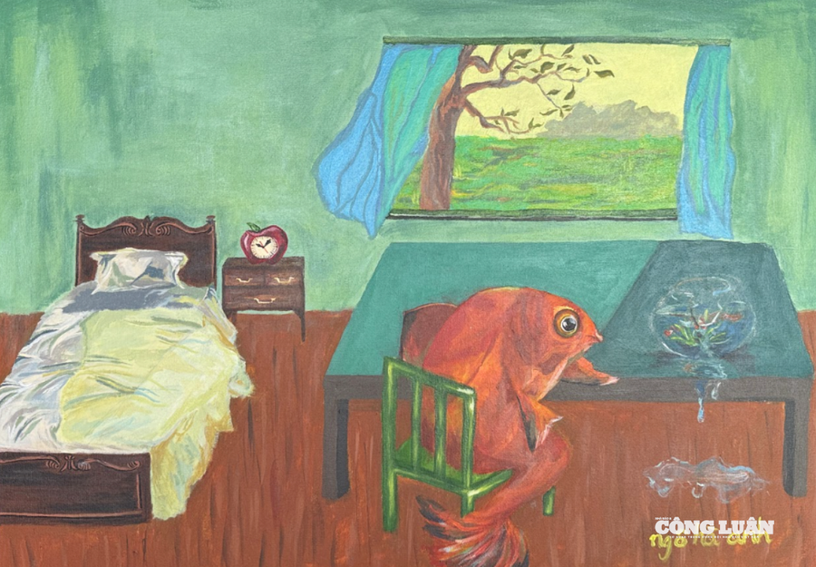 Tác phẩm “The beginning” của họa sĩ Ngô Hà Anh, miêu tả về sự trầm uất và tự do.