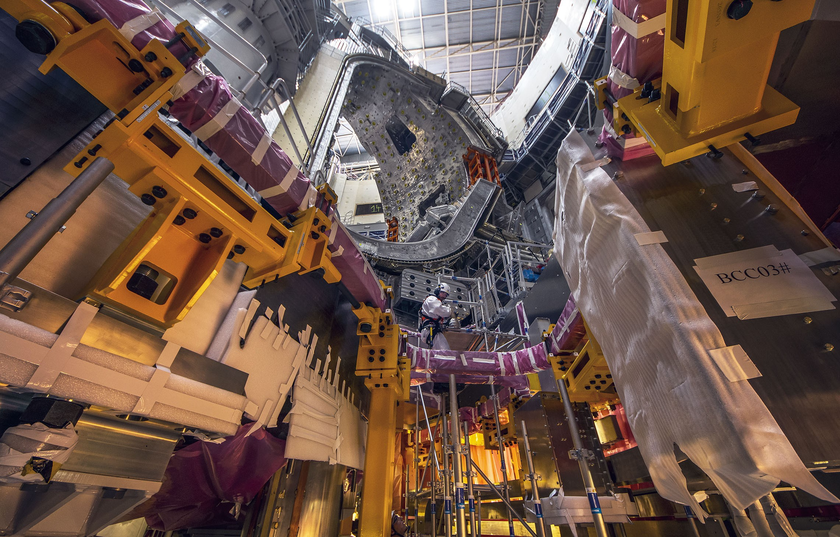 Các kỹ thuật viên lắp đặt các bộ phận giúp giữ plasma bên trong lò tokamak khổng lồ của ITER. Hình ảnh: ITER