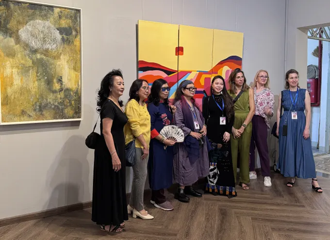 Nếu các nghệ sĩ Việt Nam mang đến những tác phẩm đậm chất truyền thống qua chất liệu sơn mài, lụa với cảm hứng từ con người và đời sống, thì các nghệ sĩ Pháp và quốc tế lại thể hiện tinh thần tự do, phóng khoáng qua ngôn ngữ trừu tượng và đương đại.