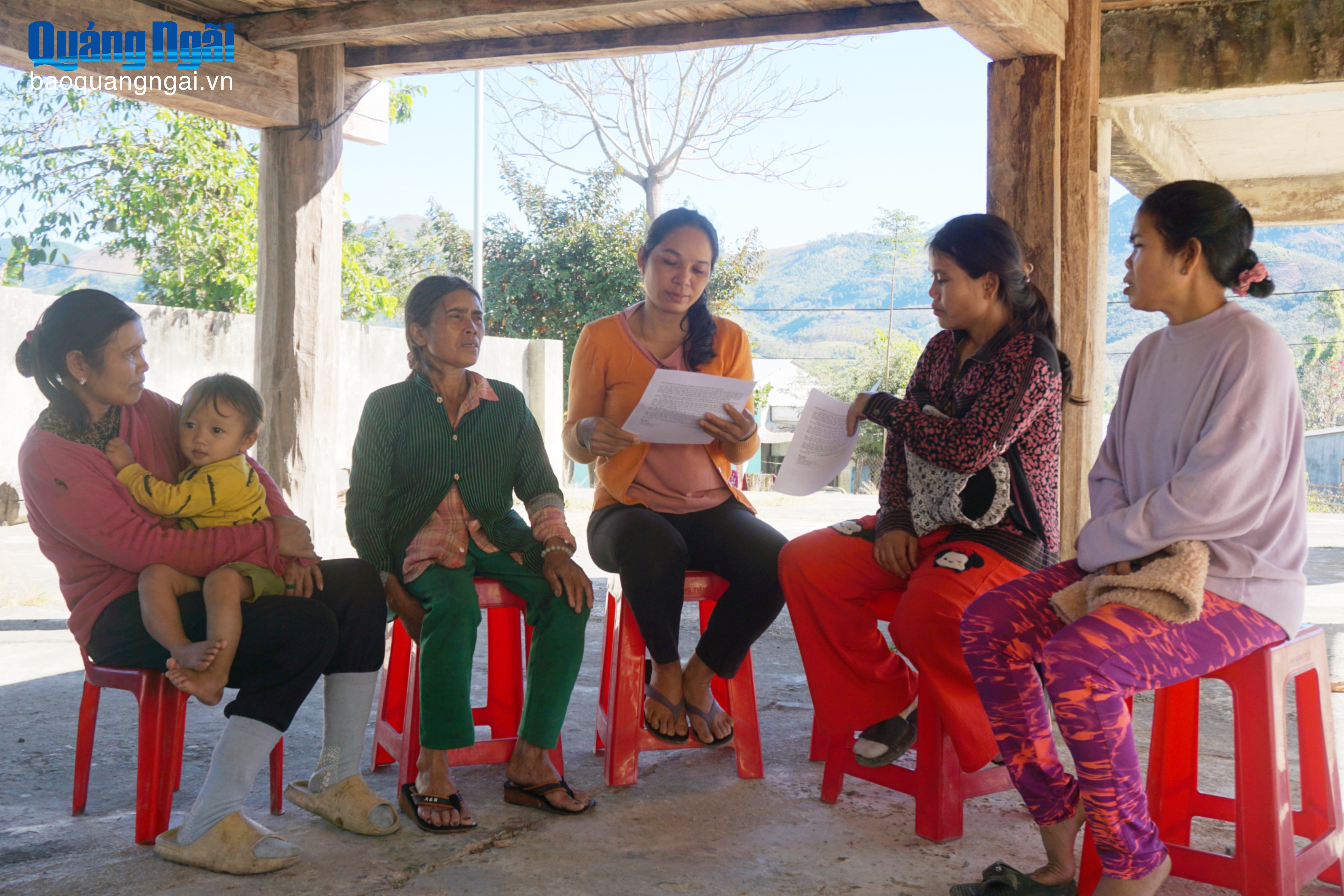 Chị Y Thút (ở giữa) vận động người dân trong thôn vay vốn để phát triển sản xuất.