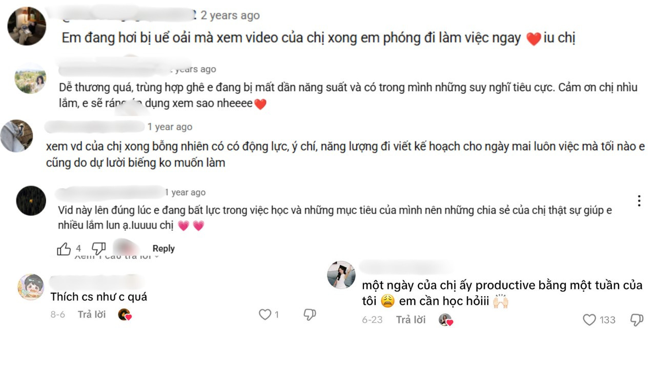 “Càng xem nhiều video về năng suất, mình càng dễ rơi vào tâm lý so sánh. Mình biết mỗi người có cách sống khác nhau, nhưng trong đầu vẫn cứ xuất hiện suy nghĩ ‘người ta làm được, sao mình lại không’. Cảm giác đó lặp lại khiến mình mất tự tin, lúc nào cũng thấy bản thân chưa đủ giỏi, chưa đủ cố gắng”, Yến bộc lộ tâm trạng của mình.