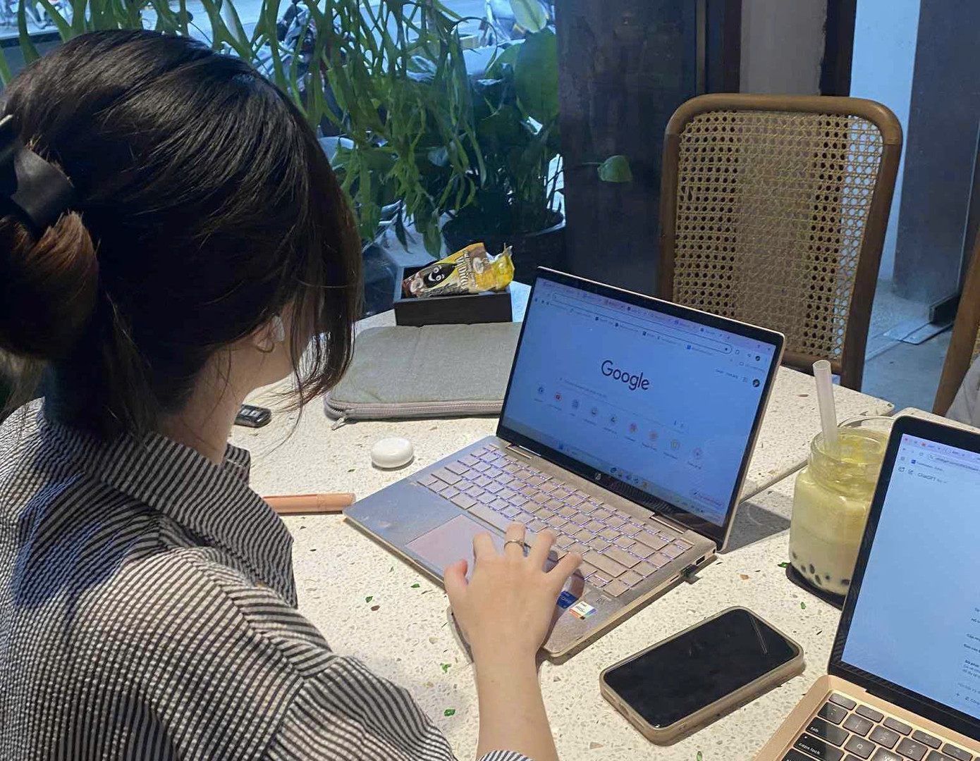 Hải Yến trong một buổi làm việc tại quán cà phê, nơi cô thường dành thời gian sau giờ làm để học thêm và phát triển bản thân.