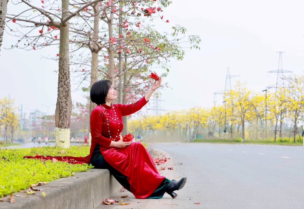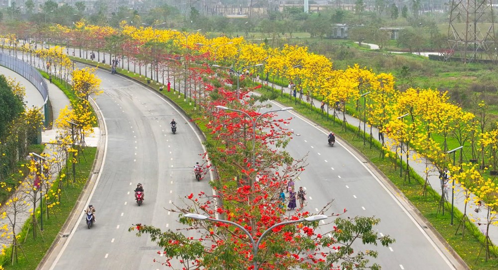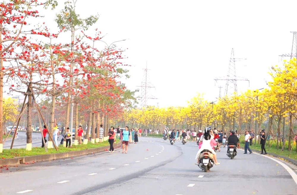 Hai gam màu đối lập nhưng hài hòa khiến tuyến đường trở thành phông nền đặc biệt, thu hút nhiều người đến chiêm ngưỡng và ghi lại khoảnh khắc mùa xuân đầy thi vị giữa khu đô thị.