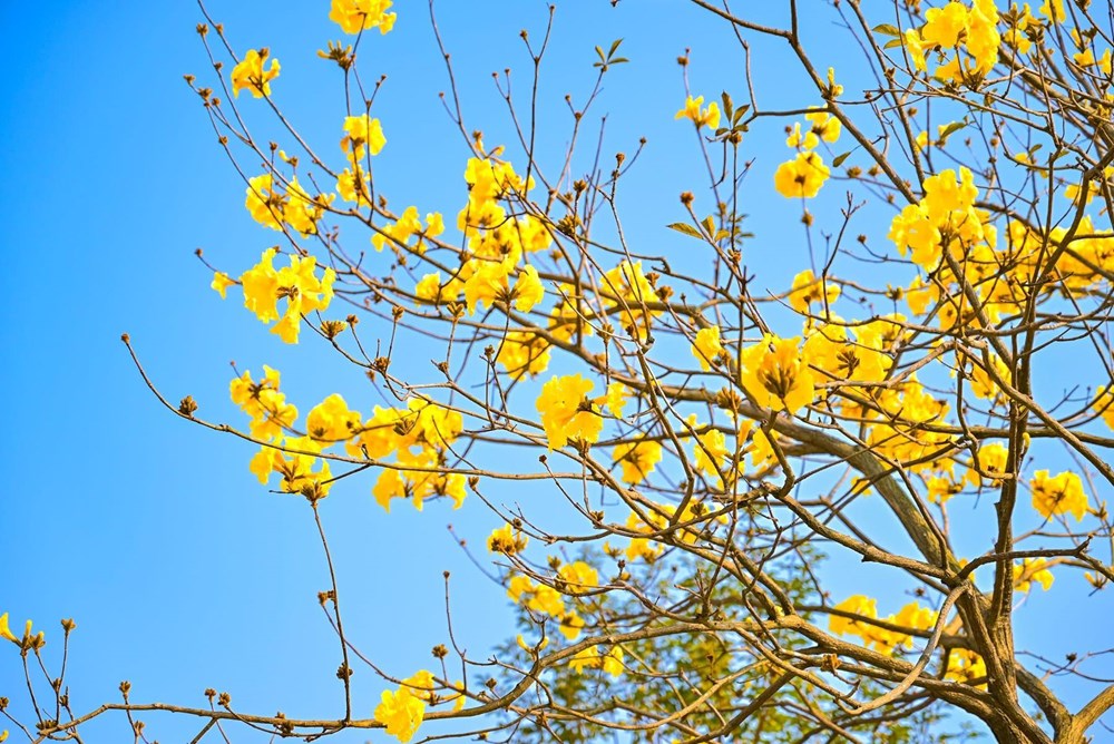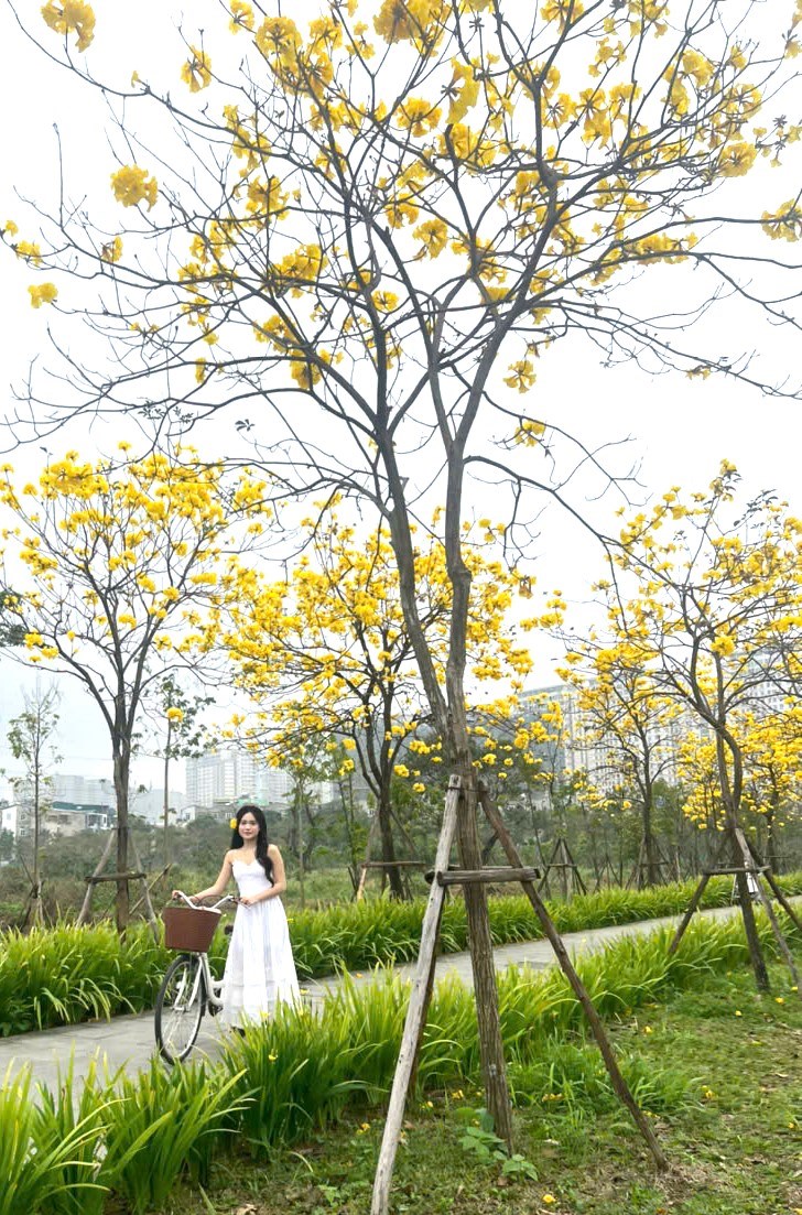 Những ngày đầu tháng 3, sắc vàng của hoa phong linh bất ngờ phủ kín nhiều tuyến phố và không gian ven đô, tạo nên khung cảnh rực rỡ giữa lòng đô thị.