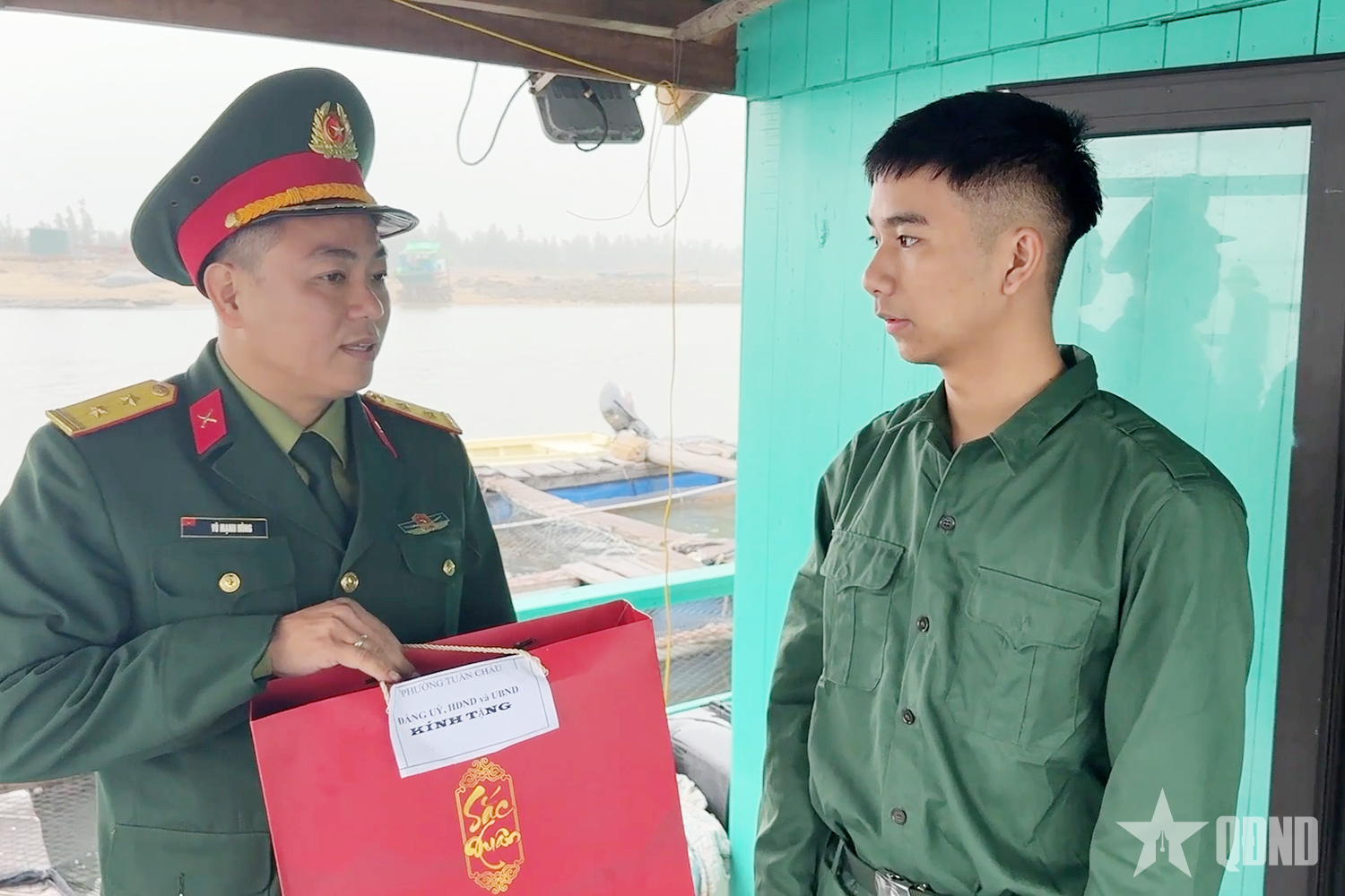 Trung tá Vũ Mạnh Hùng, Chỉ huy trưởng Ban CHQS phường Tuần Châu, thăm tặng quà thanh niên chuẩn bị lên đường nhập ngũ.