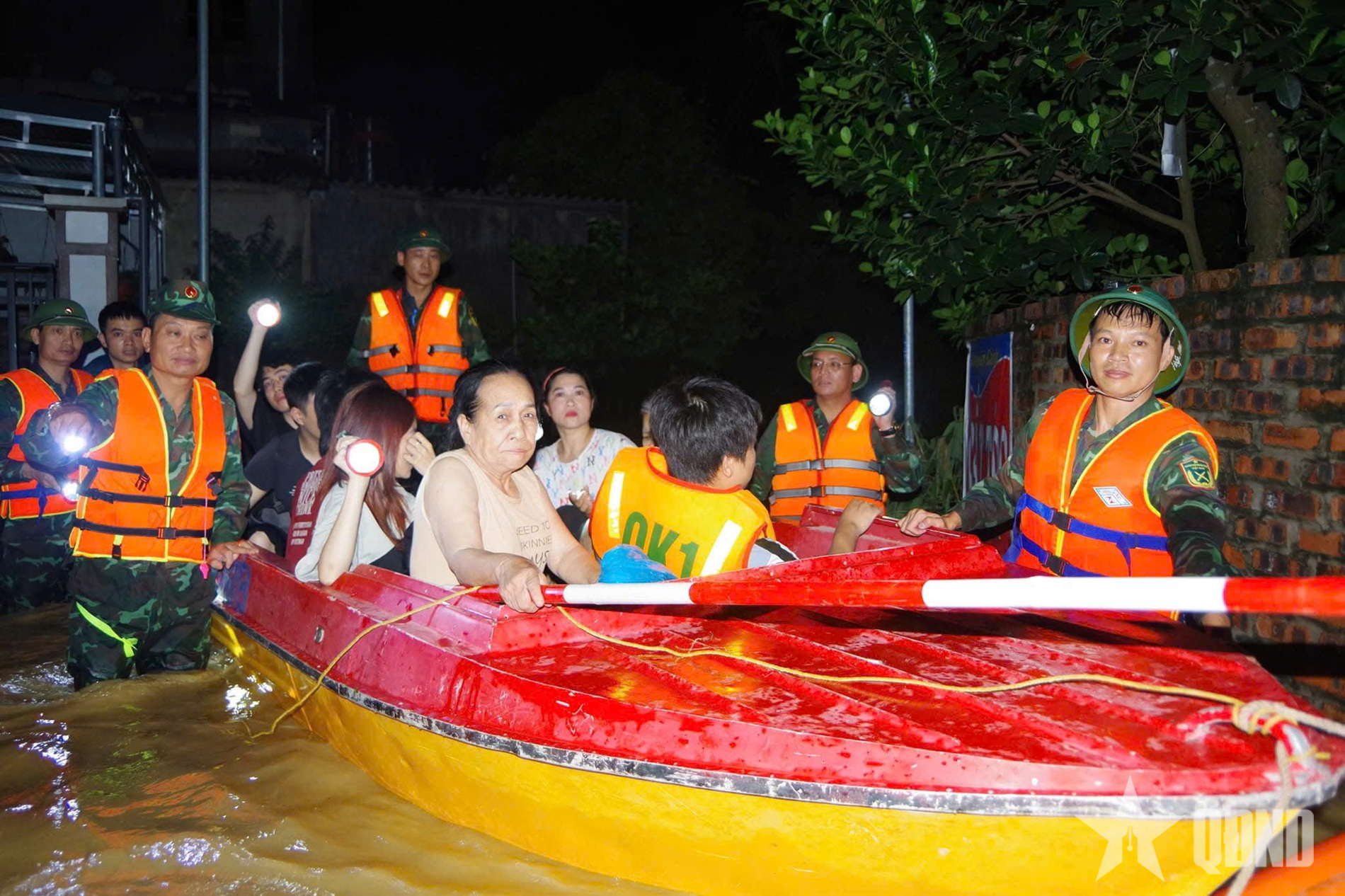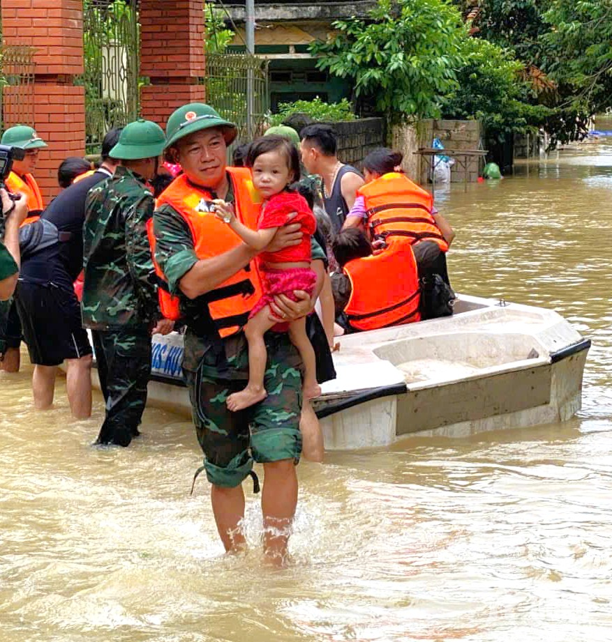 Cán bộ, chiến sĩ Bộ CHQS tỉnh Thái Nguyên cứu hộ, cứu nạn nhân dân trong mưa lũ.