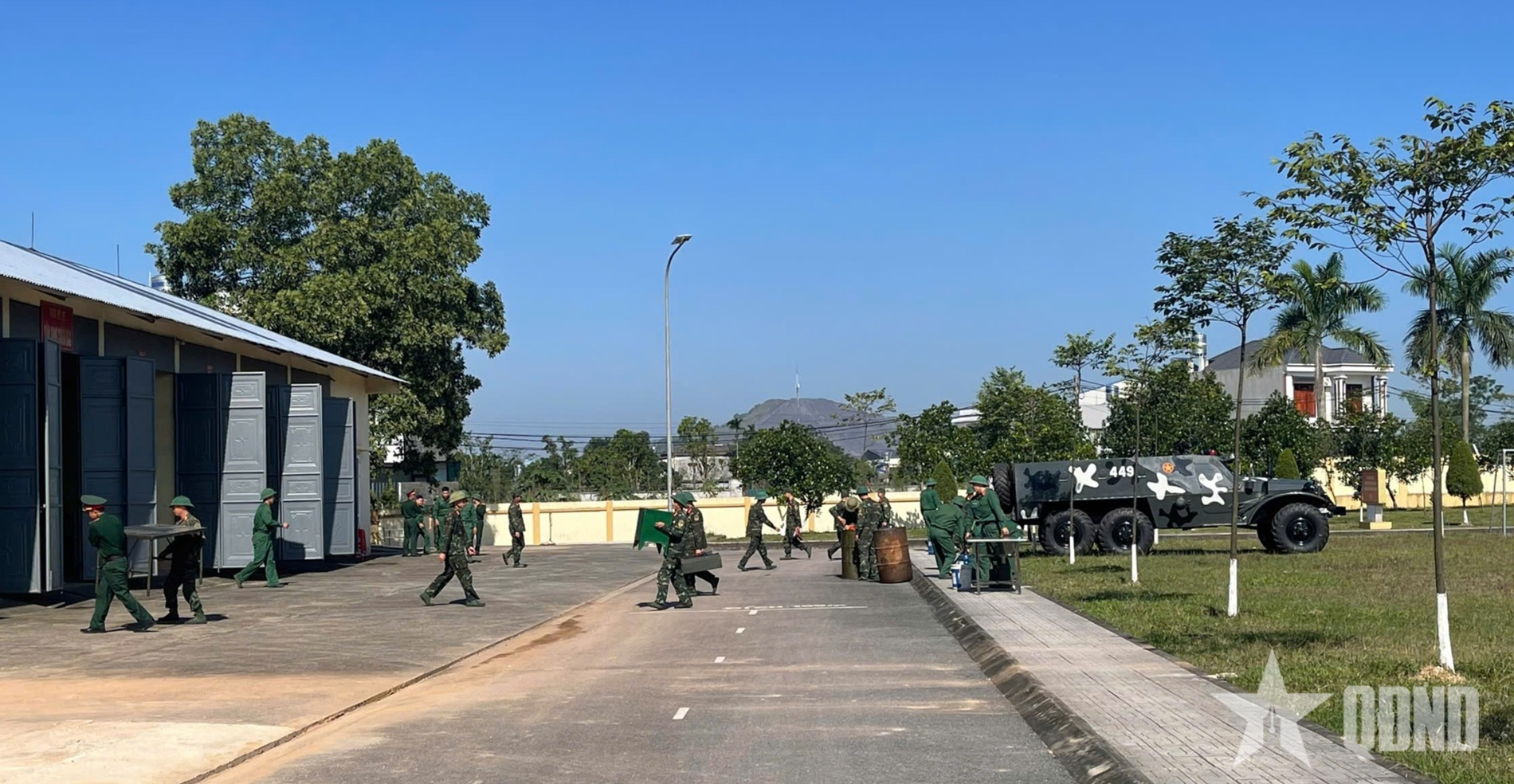 Cán bộ, chiến sĩ Trung đoàn 832, Bộ CHQS tỉnh Thái Nguyên củng cố cảnh quan môi trường chào mừng Đại hội XIV của Đảng.