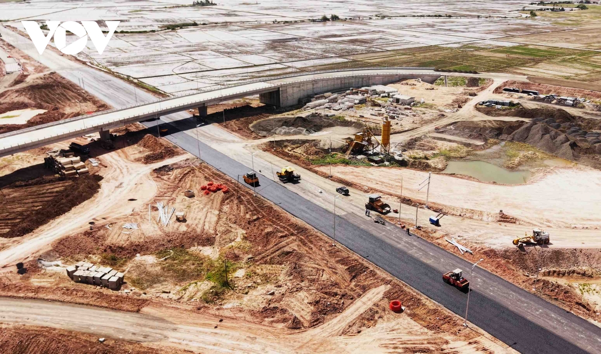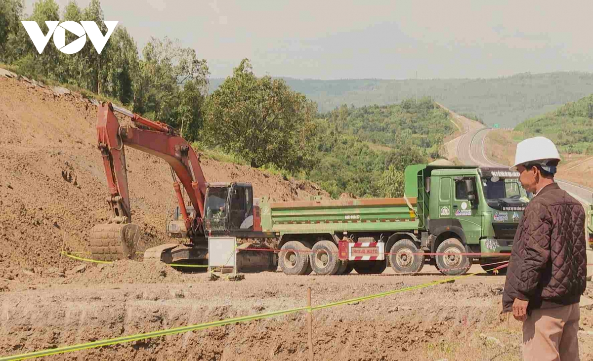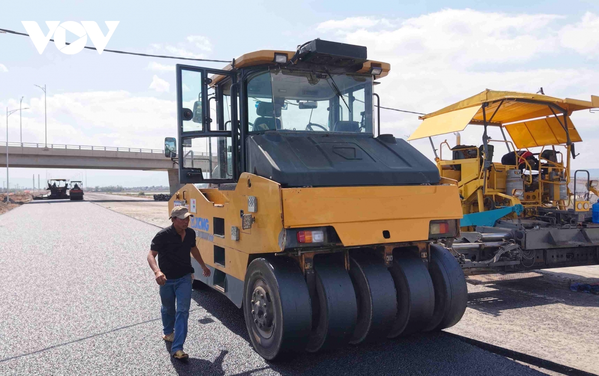 Công trình đang trong giai đoạn nước rút, mỗi ngày các nhà thầu vẫn bố trí hàng chục phương tiện máy móc cùng hàng trăm công nhân, kỹ sư thi công xây lắp hoàn thành tuyến đường. Không khí lao động diễn ra khẩn trương, chào mừng Đại hội XIV của Đảng.