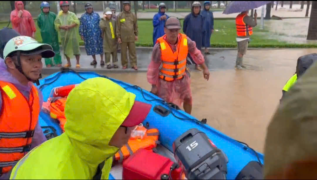 Nhu yếu phẩm cũng được vận chuyển tới từng mái nhà. Tại một số xã, lực lượng cứu hộ vừa di dời người già, trẻ nhỏ, vừa mang theo thức ăn, nước uống để bà con không phải đói khát giữa mưa.