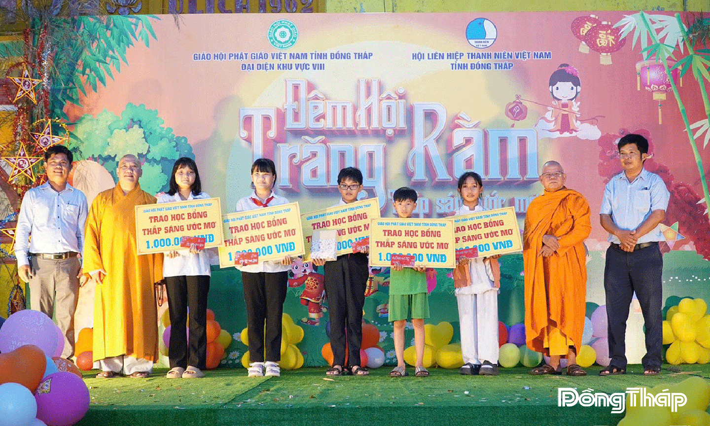 Giáo hội Phật giáo Việt Nam tỉnh Đồng Tháp - Đại diện khu vực VIII trao học bổng cho học sinh có hoàn cảnh khó khăn trên địa bàn xã Tân Đông.