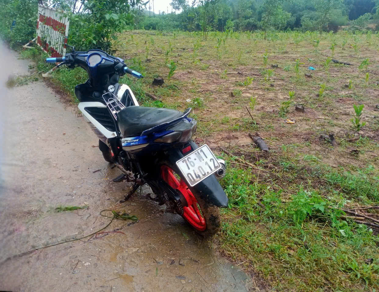 Đến 7 giờ 15 phút sáng ngày 30-10, chiếc xe máy của anh Th được tìm thấy gần khu vực cầu Xã Trạch. Ảnh: VÕ THẠCH