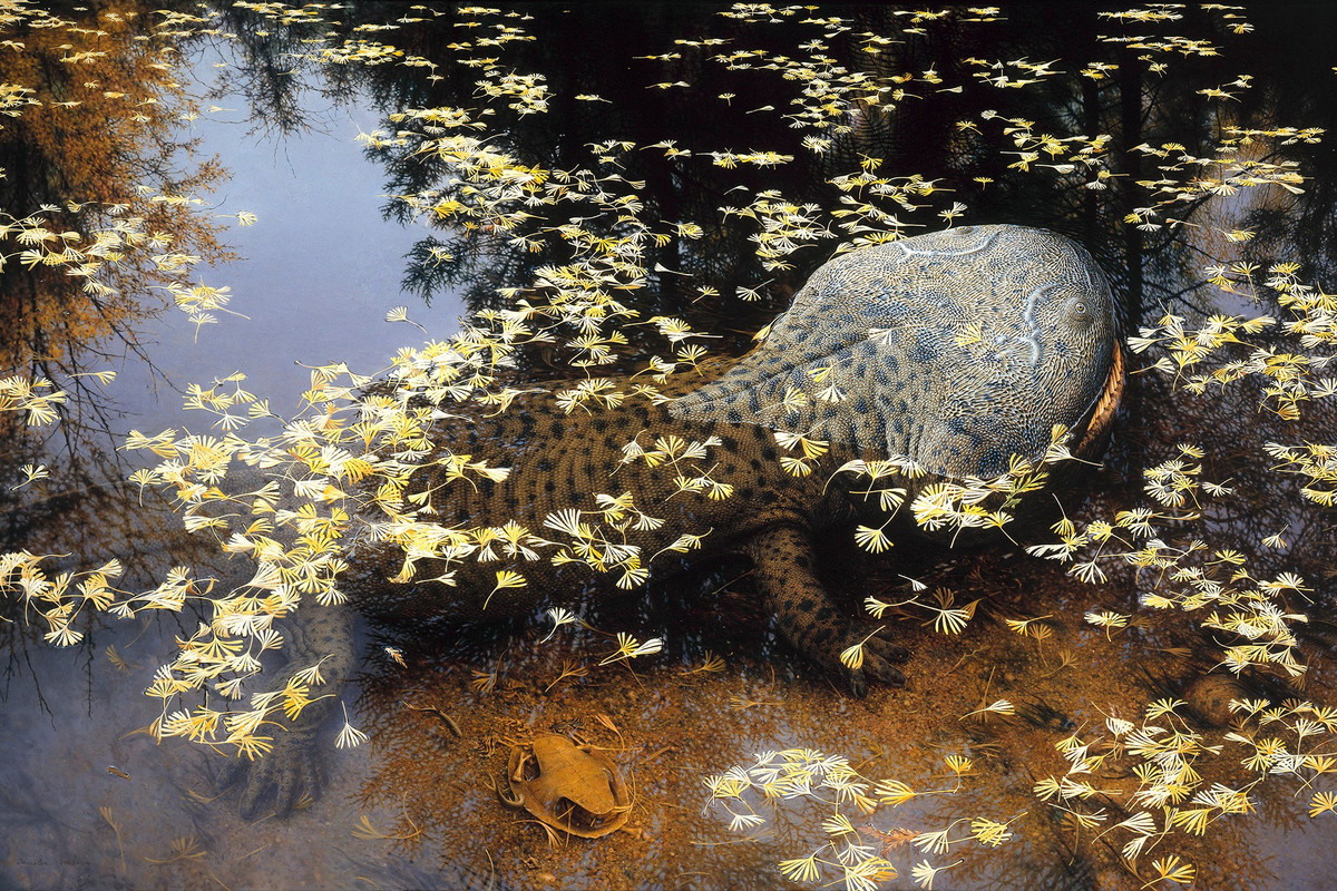 Thích nghi với môi trường lạnh. Khi bò sát biến mất khỏi vùng băng giá, Koolasuchus chiếm lĩnh các dòng sông lạnh thời bấy giờ. Ảnh: fineartamerica.com.