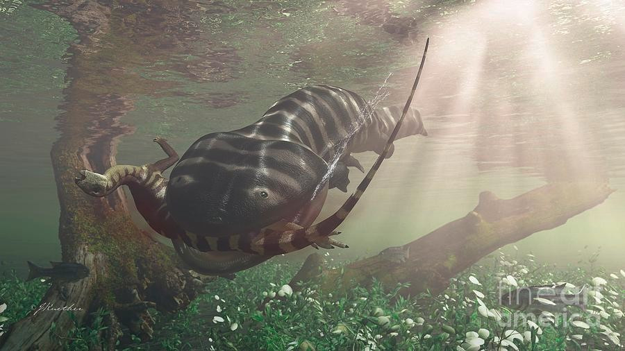 Thuộc nhóm temnospondyl cổ đại. Đây là nhóm lưỡng cư khổng lồ từng thống trị Trái Đất trước khi bò sát phát triển. Ảnh: paleo-nerd.com.