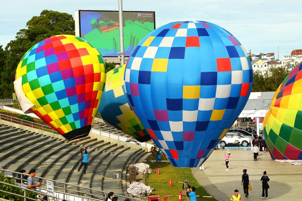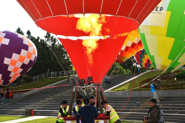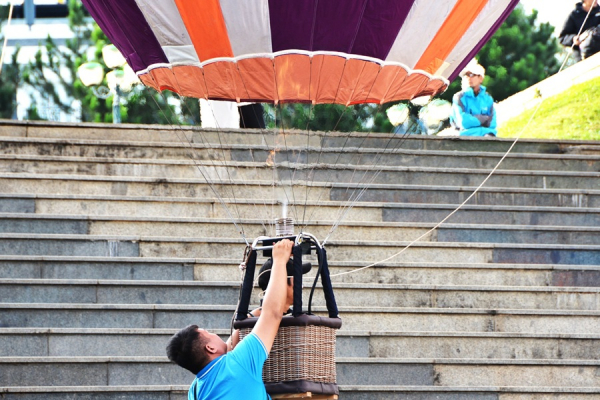 Khinh khí cầu khổng lồ bay lên bầu trời tại quảng trường Lâm Viên Đà Lạt.