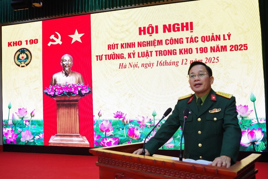 Phát biểu chỉ đạo hội nghị, Đại tá Dương Ngọc Tuyến, Bí thư Đảng ủy, Phó cục trưởng Cục Xăng dầu ghi nhận những kết quả mà Kho 190 đã đạt được trong tổ chức, triển khai công tác quản lý tư tưởng, kỷ luật năm 2025. Đồng thời yêu cầu cấp ủy, chỉ huy các cấp trong Kho 190 tiếp tục quán triệt, triển khai thực hiện nghiêm túc, đầy đủ, hiệu quả công tác quản lý tư tưởng, kỷ luật bảo đảm an toàn; thực hiện thắng lợi mọi nhiệm vụ được giao.