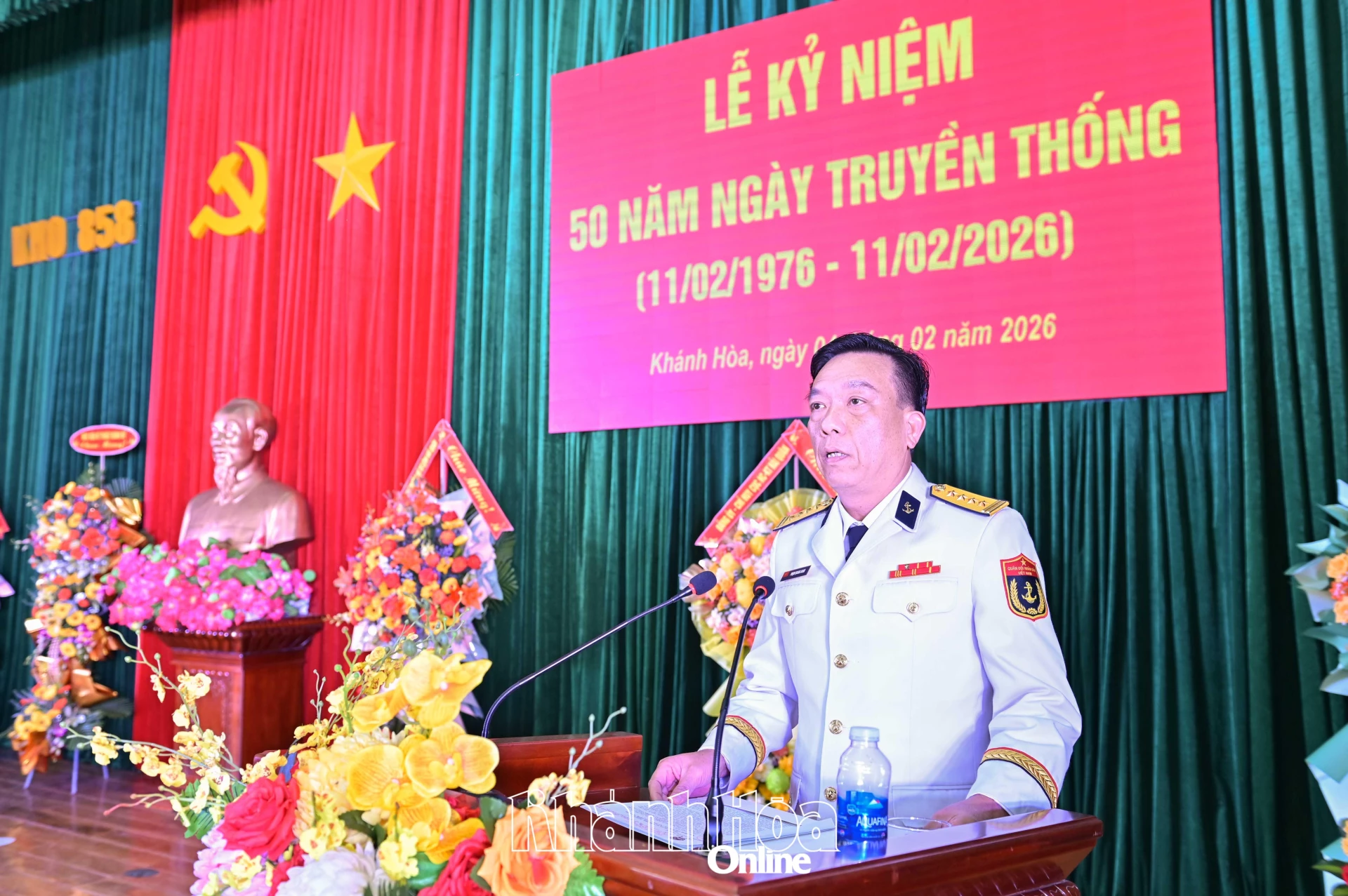 Ngày 4-2, tại tỉnh Khánh Hòa, Kho 858, Cục Hậu cần - Kỹ thuật, Quân chủng Hải quân tổ chức lễ kỷ niệm 50 năm ngày truyền thống (11-2-1976 - 11-2-2026). Đại tá Lê Hồng Quang - Cục trưởng, Chủ nhiệm Hậu cần - Kỹ thuật Hải quân đến dự buổi lễ. Dự lễ kỷ niệm có các tướng lĩnh, lãnh đạo cơ quan, đơn vị thuộc Quân chủng Hải quân, Cục Hậu cần - Kỹ thuật Hải quân; các đơn vị, nhà trường trên địa bàn đóng quân; đại diện cấp ủy, chính quyền địa phương cùng các thế hệ cán bộ, chiến sĩ Kho 858 qua các thời kỳ.