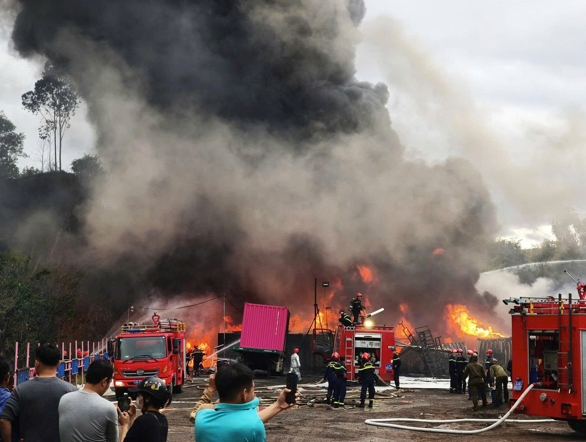 Theo người dân địa phương, thời điểm trên, đám cháy xuất phát từ kho chứa hàng, bên trong có nhiều thùng container, khiến lửa lan nhanh và liên tục phát ra nhiều tiếng nổ lớn.