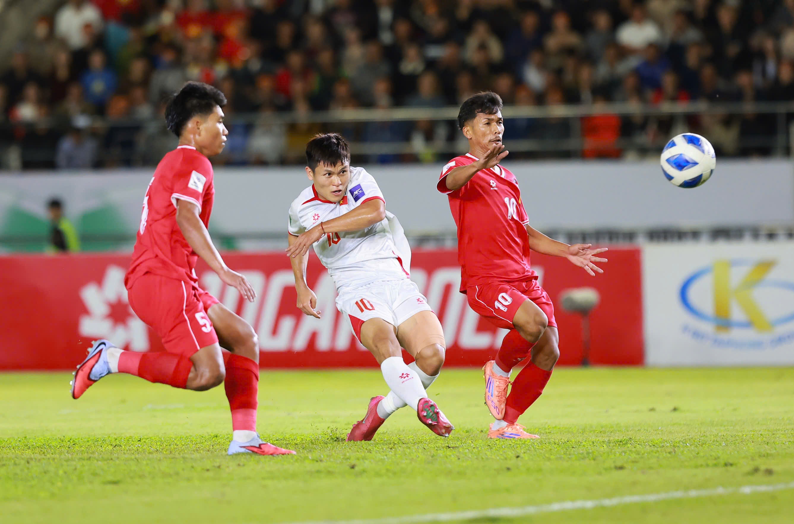Trên sân vận động quốc gia Lào, Việt Nam gặp khó khăn lớn trong việc chuyển hóa cơ hội thành bàn thắng trước chủ nhà, dù kiểm soát bóng tới 60% và liên tục ép sân trong hiệp một.
