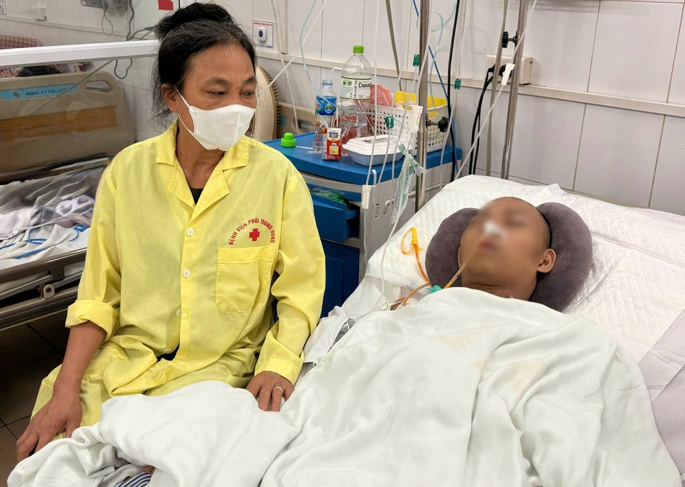 Cháu Phạm Ngọc Quang hiện đang điều trị tại Bệnh viện Phổi Trung ương với nhiều bệnh lý nặng nề.