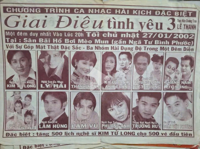 Trên poster, khán giả dễ dàng bắt gặp những cái tên từng gắn liền với ký ức của thập niên 90 như Kim Tử Long, Lý Hải, Kiều Oanh, Trung Dân… Sự xuất hiện của loạt nghệ sĩ quen thuộc khiến nhiều người như được kéo ngược về thời kỳ vàng son của những chương trình lưu diễn, nơi tiếng cười, âm nhạc và sân khấu gắn kết khán giả theo cách rất riêng.