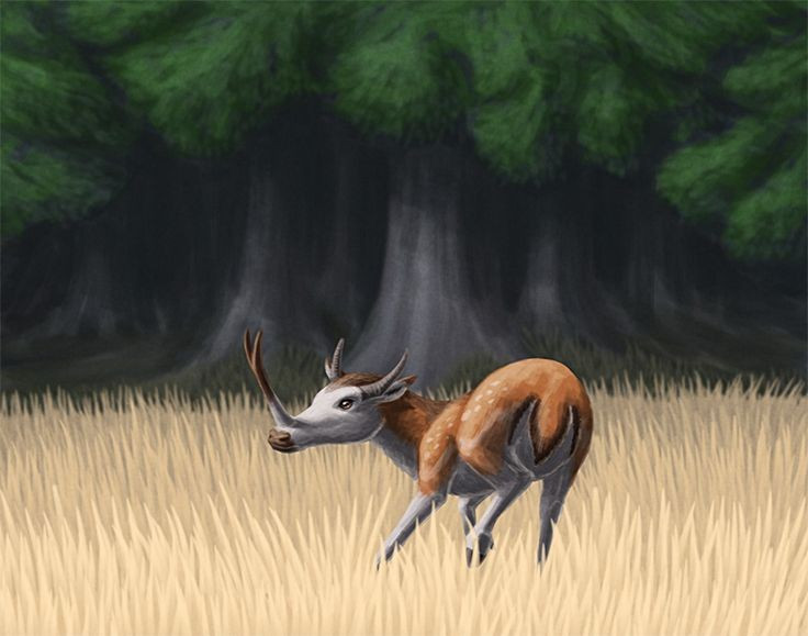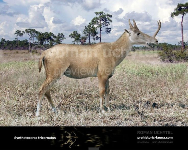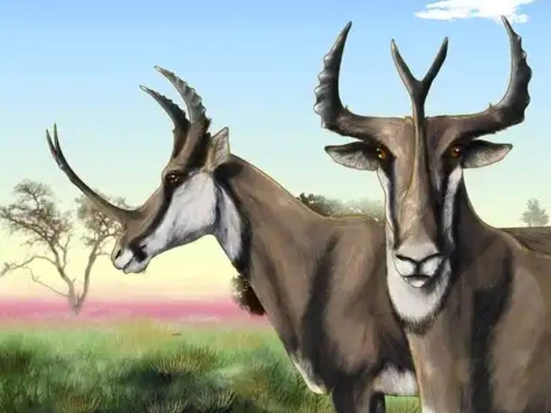 Hình dáng cơ thể giống sự kết hợp của nhiều loài. Synthetoceras có thân hình gợi nhớ đến linh dương, cổ ngắn như hươu và đầu mang nét giống lạc đà nguyên thủy. Ảnh: Pinterest.