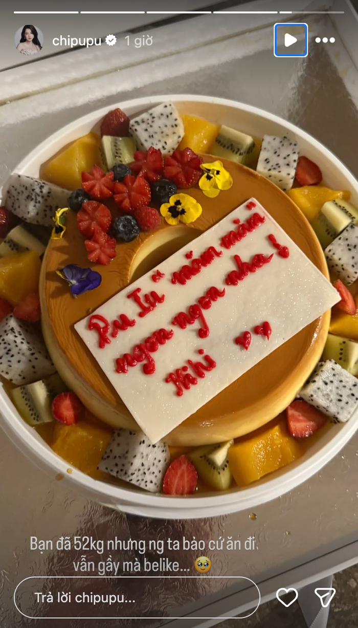 Mới đây, Chi Pu khiến cộng đồng mạng xôn xao khi chia sẻ khoảnh khắc “bất lực" về cân nặng của chính mình đang ở con số 52. Cô còn tiết lộ được ai đó âm thầm chăm sóc, gửi đồ ăn và khuyên: “Cứ ăn đi, vẫn gầy”.