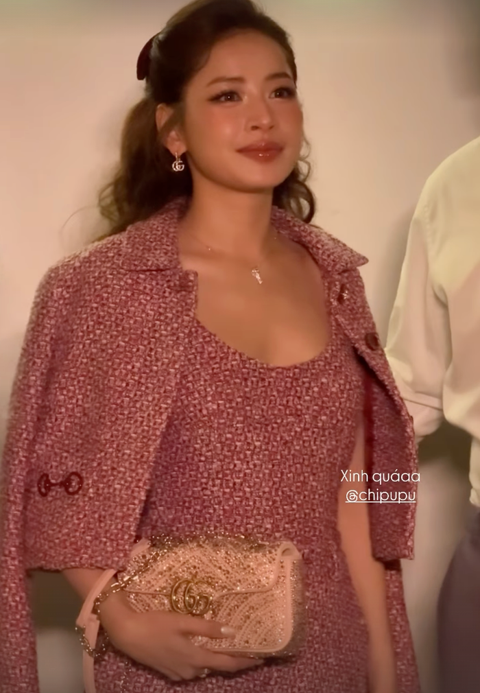 Trước khi hài hước kể về chuyện cân nặng, Chi Pu đã gây chú ý khi xuất hiện tại một sự kiện với bộ trang phục màu hồng sang chảnh. Trang phục tôn dáng, chất liệu nổi bật cùng phong thái tự tin giúp cô thu hút ống kính ngay từ những phút đầu. Người đẹp liên tục tương tác với truyền thông, được khen ngợi bởi thần thái chuyên nghiệp và vẻ ngoài chỉn chu.