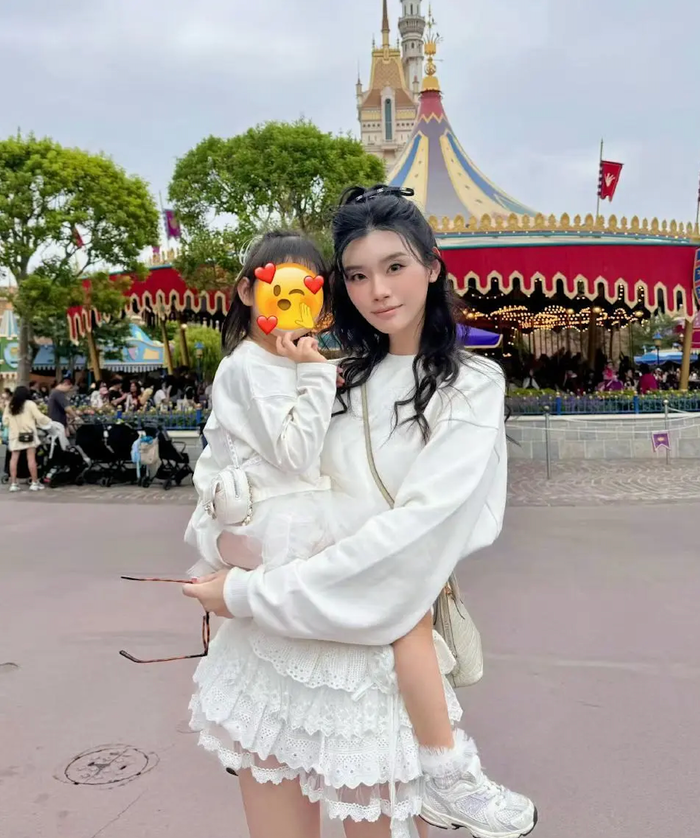 Hình ảnh mới nhất của nữ siêu mẫu Hề Mộng Dao bên cạnh con gái. Ảnh: QQ