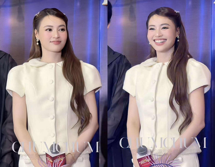 Bên cạnh vóc dáng, Lan Ngọc còn gây ấn tượng với thần thái tươi tắn, rạng rỡ. Nụ cười duyên dáng cùng phong thái tự tin giúp nữ diễn viên luôn nổi bật giữa sự kiện đông người.