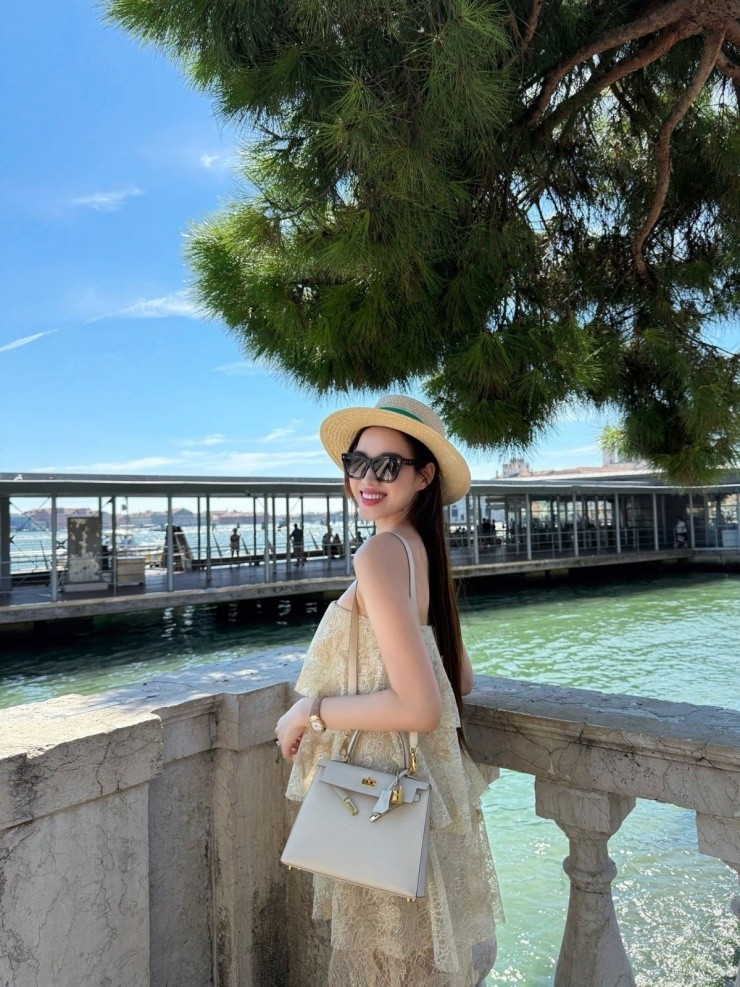 Trong chuyến du lịch Hong Kong hồi tháng 5, Hoa hậu Đỗ Thị Hà được trông thấy xách túi Hermes Kelly Sellier màu ngà, giá khoảng hơn 600 triệu đồng. Ảnh: FBNV