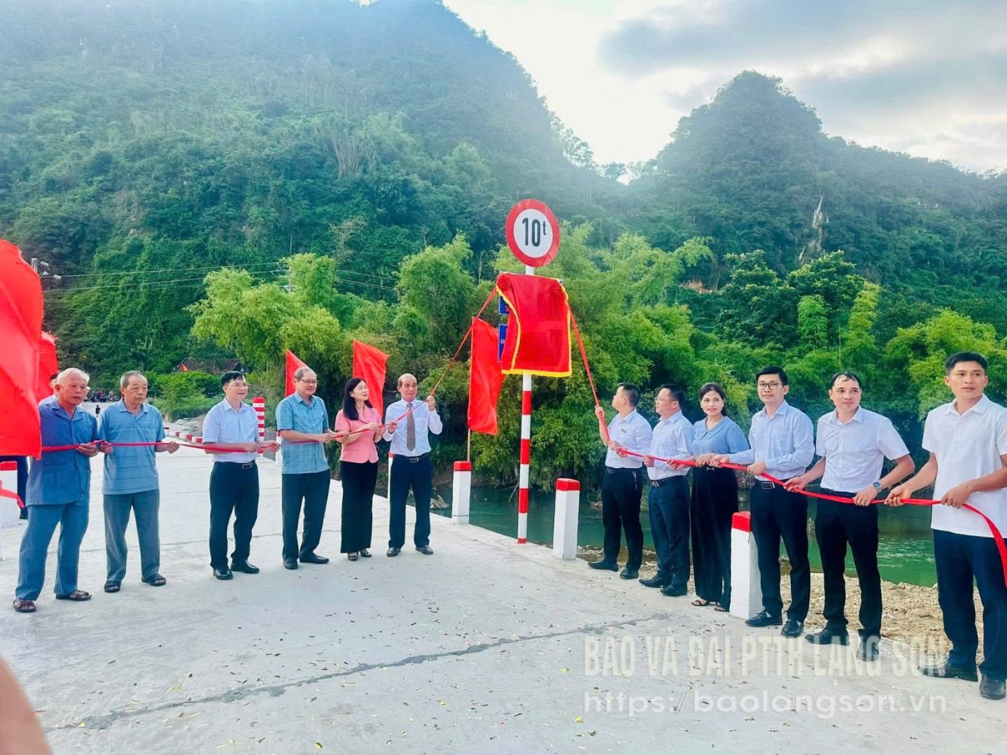 Các đại biểu khánh thành cầu Làng Ngũa, xã Chi Lăng được xây dựng theo phương châm “Nhà nước và Nhân dân cùng làm”